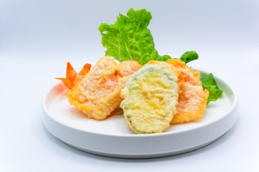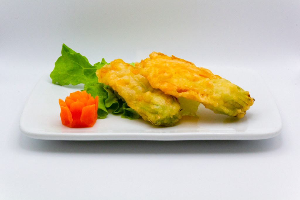 Fiori di zucca fritti ripieni di gamberi