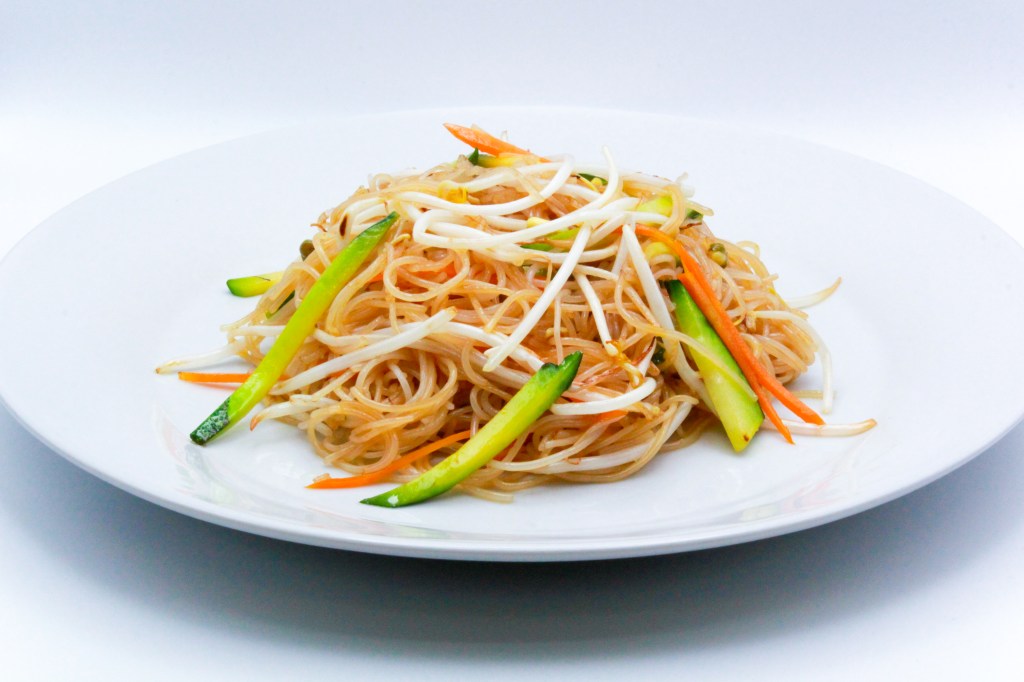 Verdure miste, sbaghetti di soia