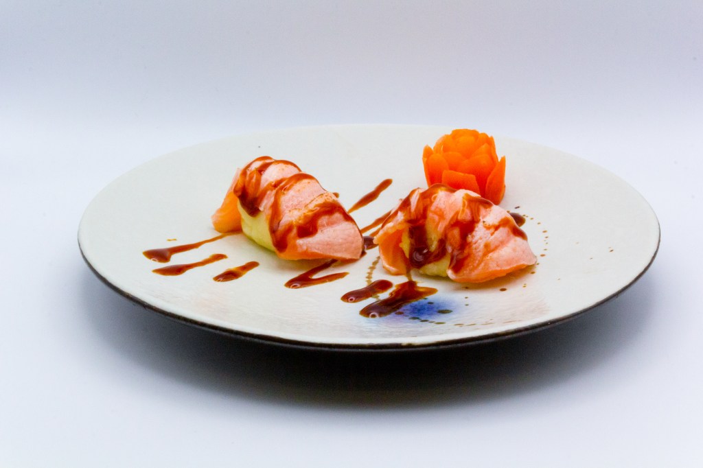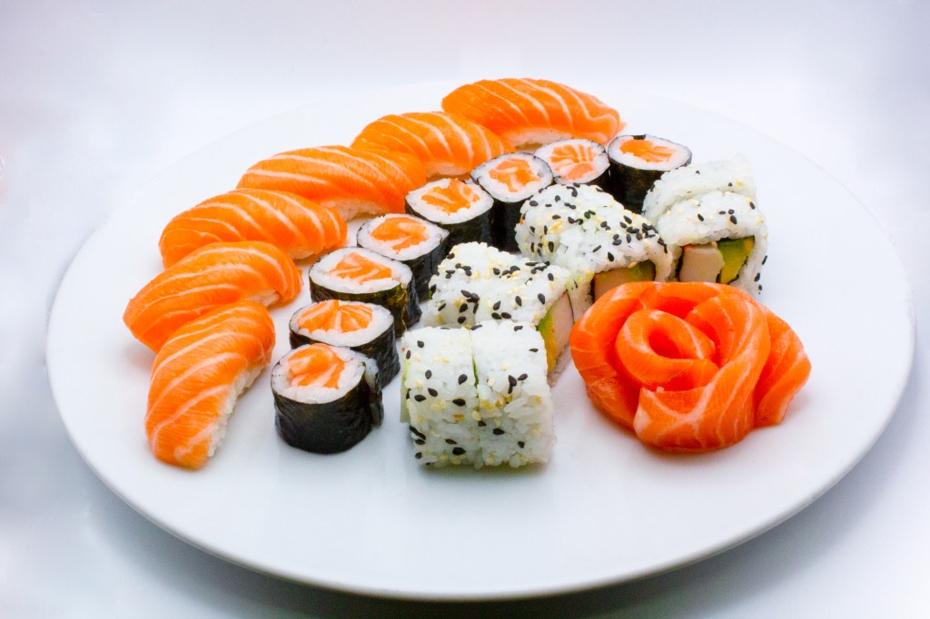 6pz nigiri salmone, 8pz uramaki, 6pz hossomaki, 6pz sashimi salmone