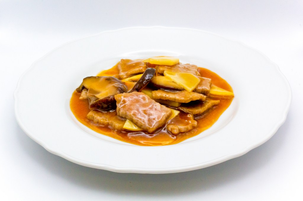 Manzo saltato con bambù, funghi e salsa di soia