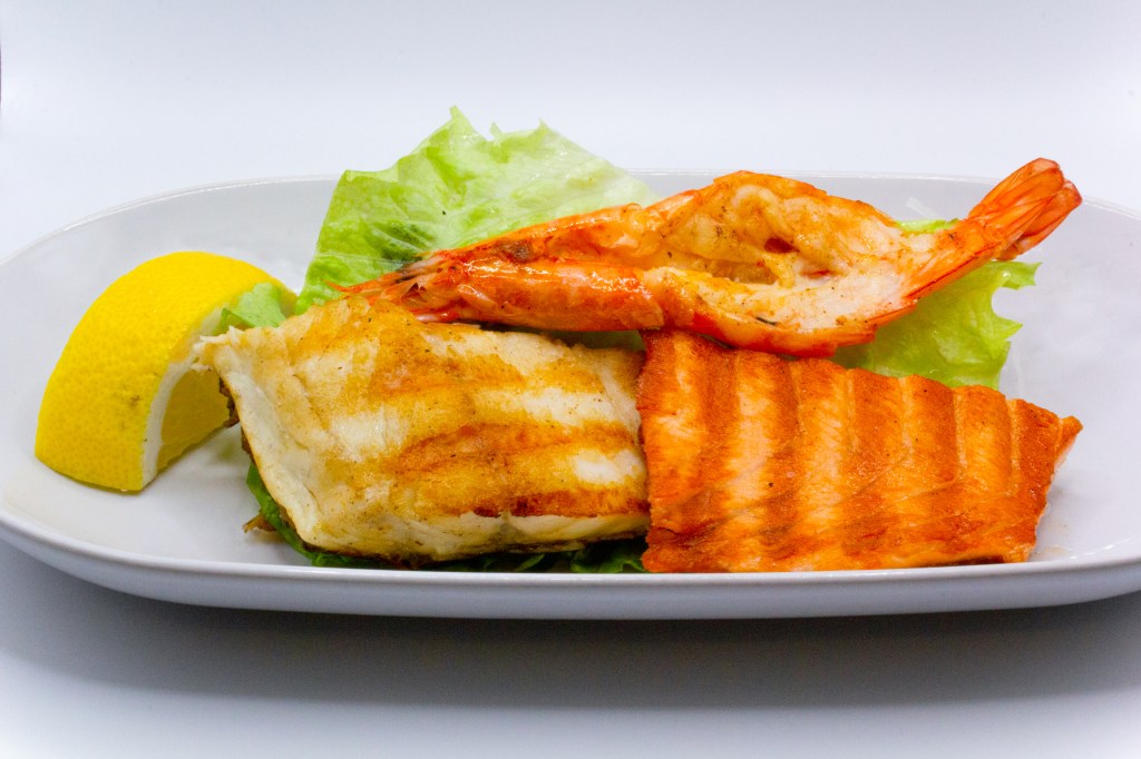 Pesce misto con gamberoni grligliato sale pepe