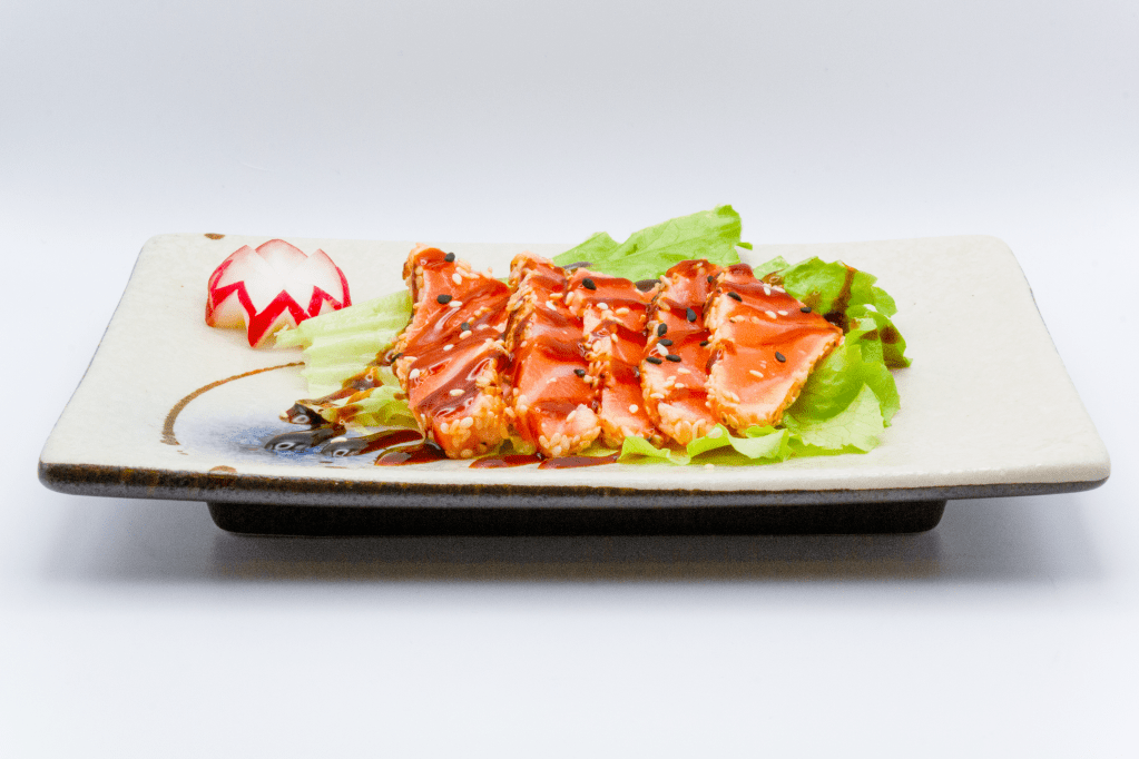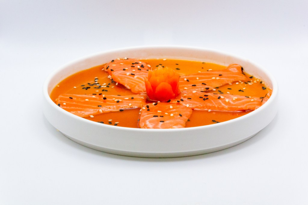 Salmone, salsa dello chef, sesamo