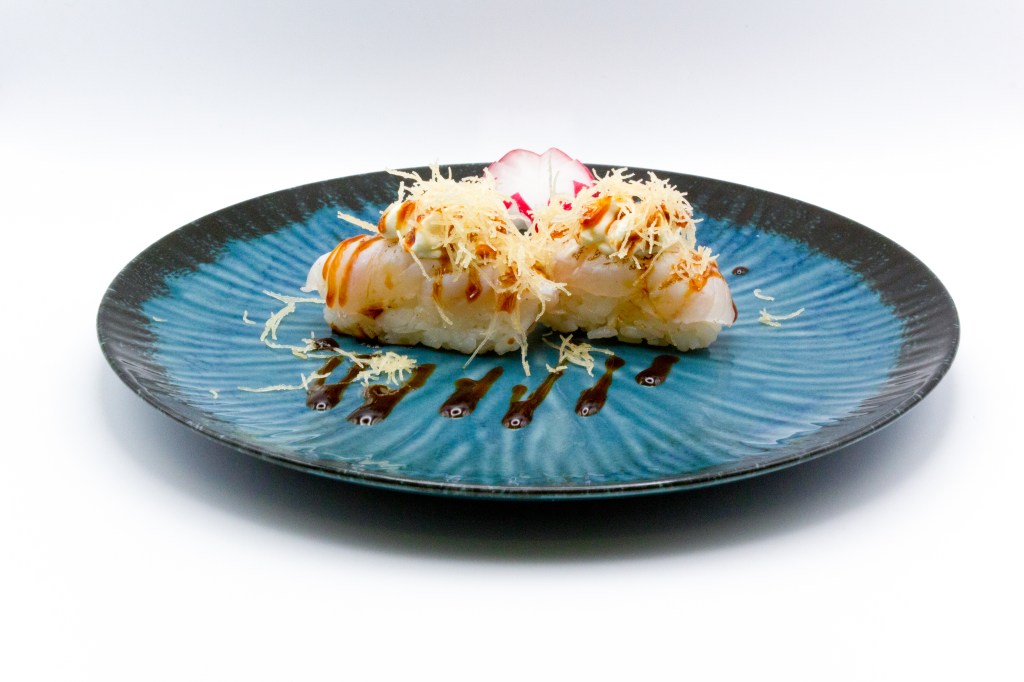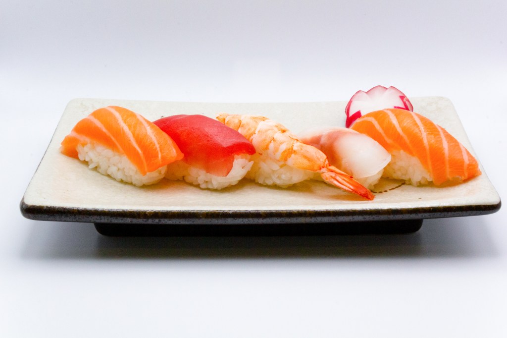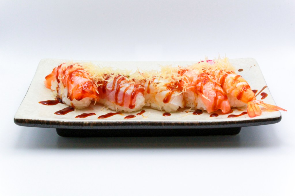 5pz nigiri salmone, 5pz nigiri gamberi (cotto)
