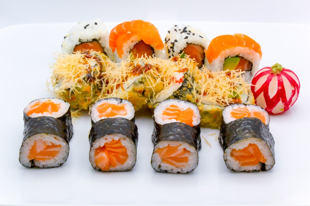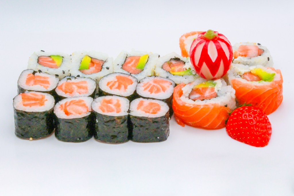 8pz hossomaki, 4pz uramaki, 6pz sashimi salmone
